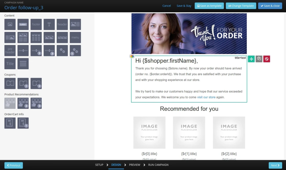 - Built in templates cover a wide use case, but also easy enough to make and modify templates that work in the drag and drop editor - my content guys have had no issues at all using the wysiwyg editor - I was able to make our responsive email template from another platform compatible with Remarkety in a few hours.